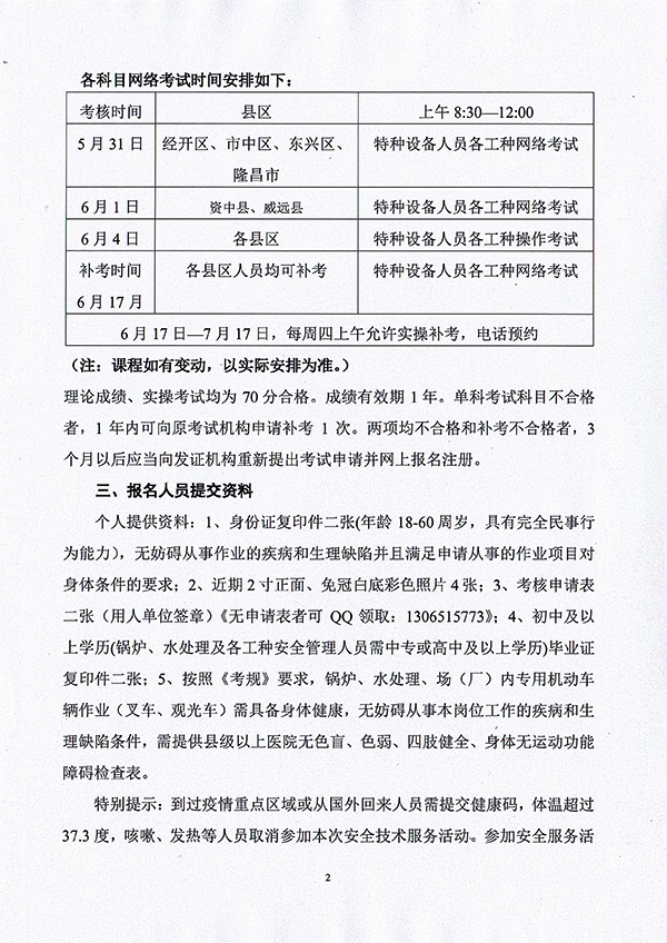 2021年春生公司03期特種設(shè)備作業(yè)人員考核時間安排