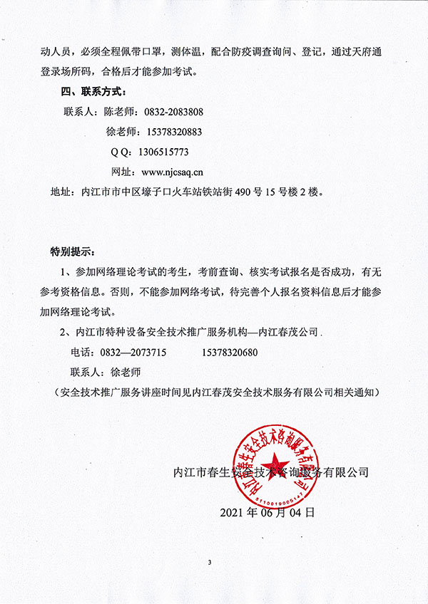 2021年春生公司04期特種設(shè)備作業(yè)人員考核時(shí)間安排
