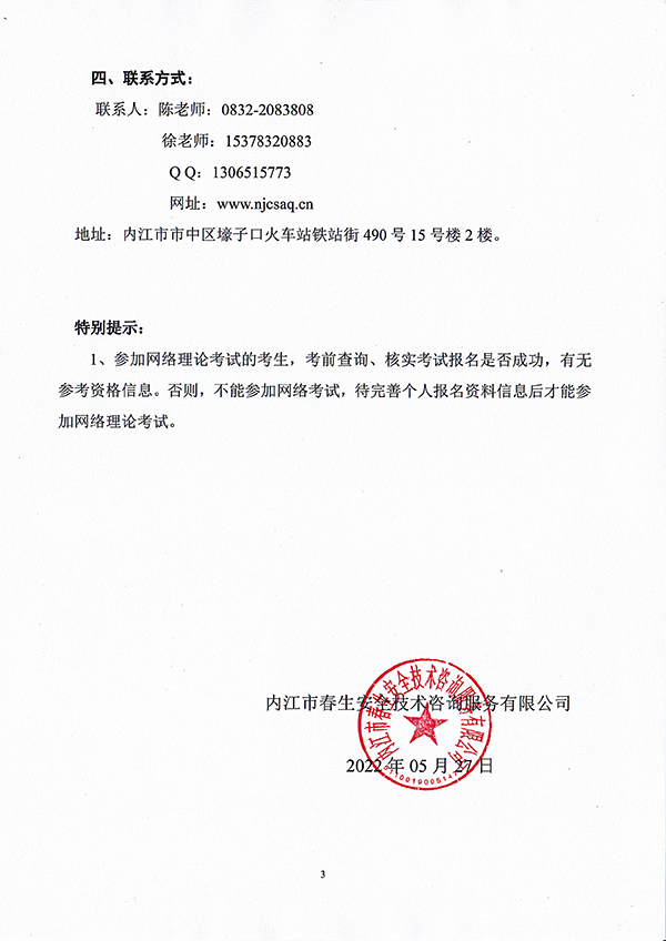 2022年春生公司05期特種設(shè)備作業(yè)人員考核時(shí)間安排