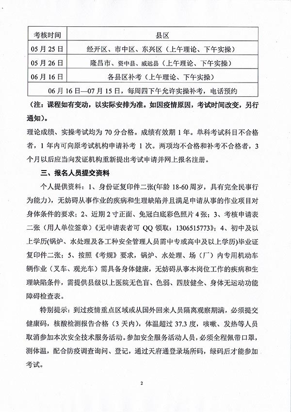 2022年春生公司06期特種設(shè)備作業(yè)人員考核時間安排