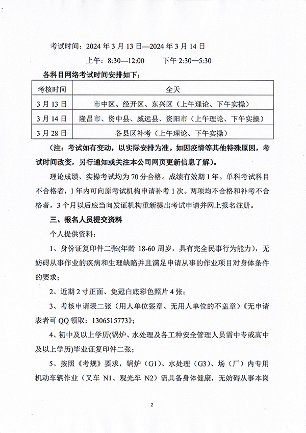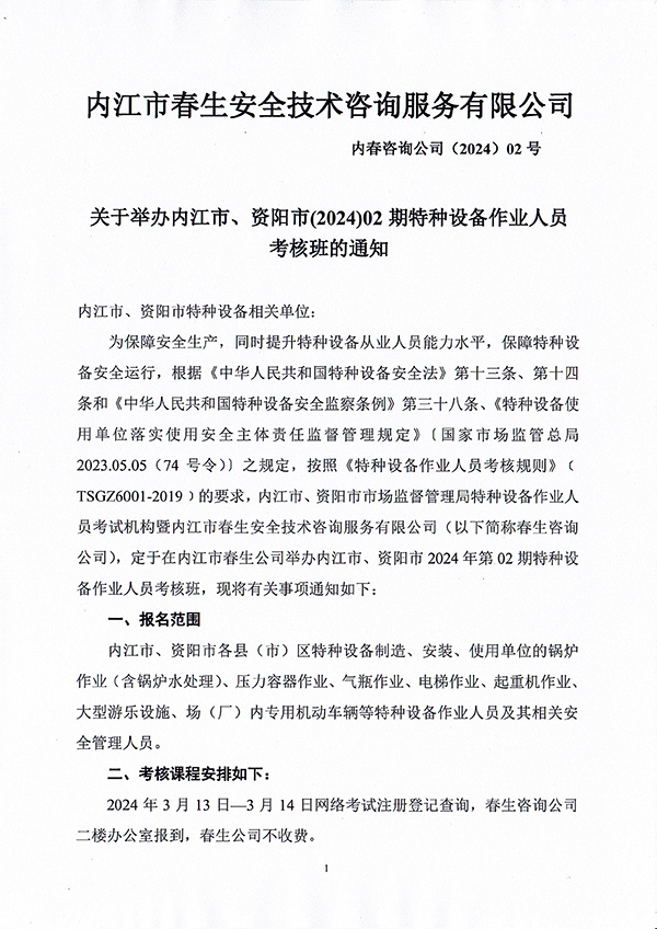 關(guān)于舉辦內(nèi)江市、資陽(yáng)市(2024)02期特種設(shè)備作業(yè)人員考核班的通