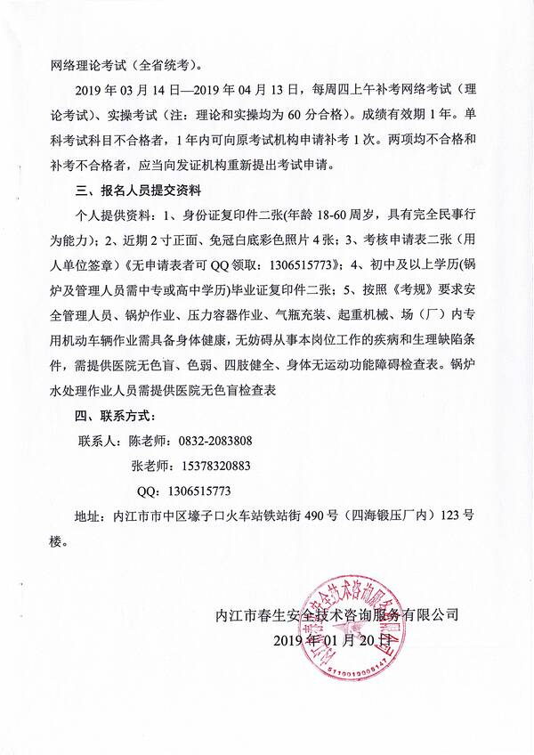 2019年第一期特種設(shè)備作業(yè)人員考核培訓(xùn)班的通知