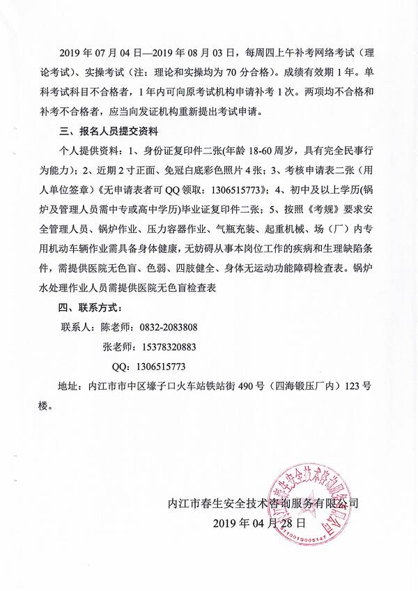 2019年第四期特種設(shè)備作業(yè)人員考核培訓(xùn)班的通知