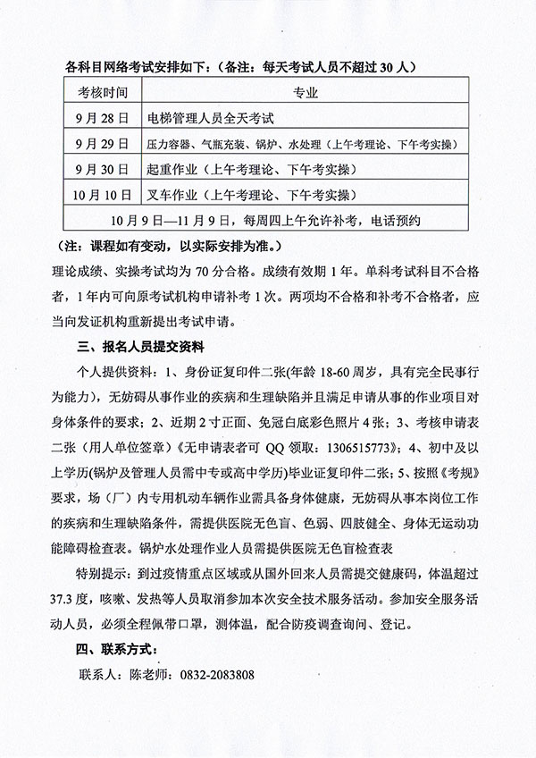 2020年第四期特種設(shè)備作業(yè)人員考核培訓班的通知